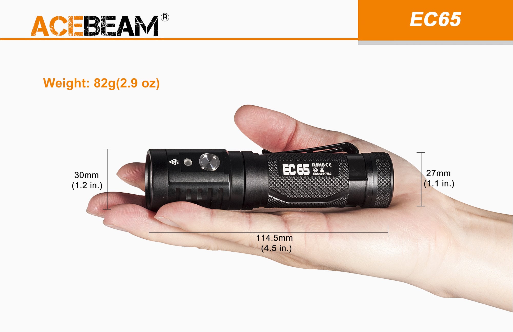 - 機身尺寸114.5×30mm,整機僅82g,單手握持舒適。