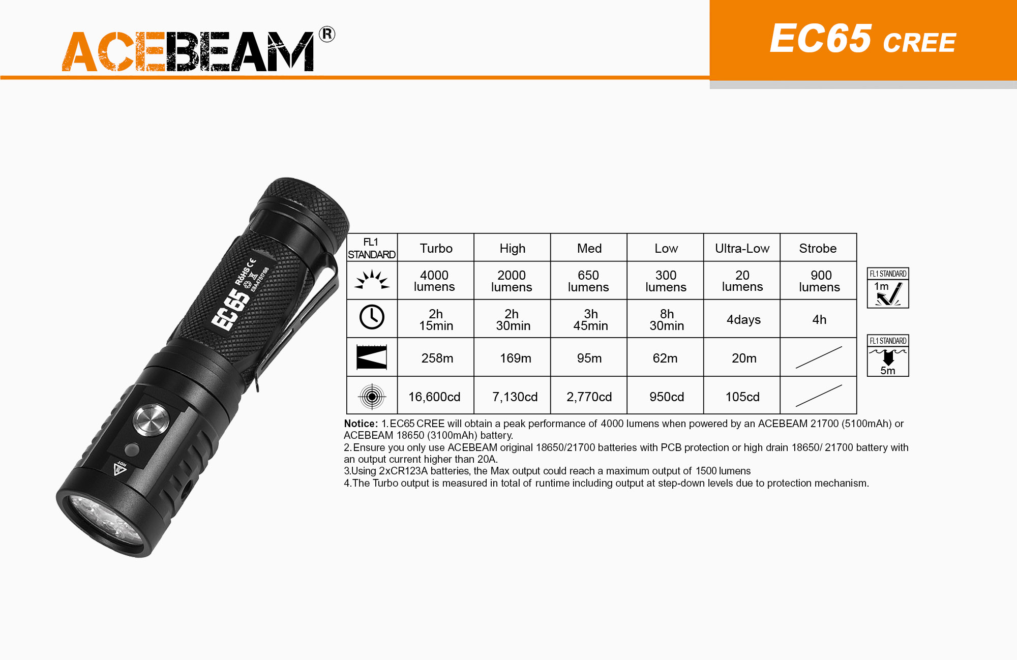 - 滿配檔位:極亮/高/中/低/超低亮/爆閃,全場景覆蓋。
