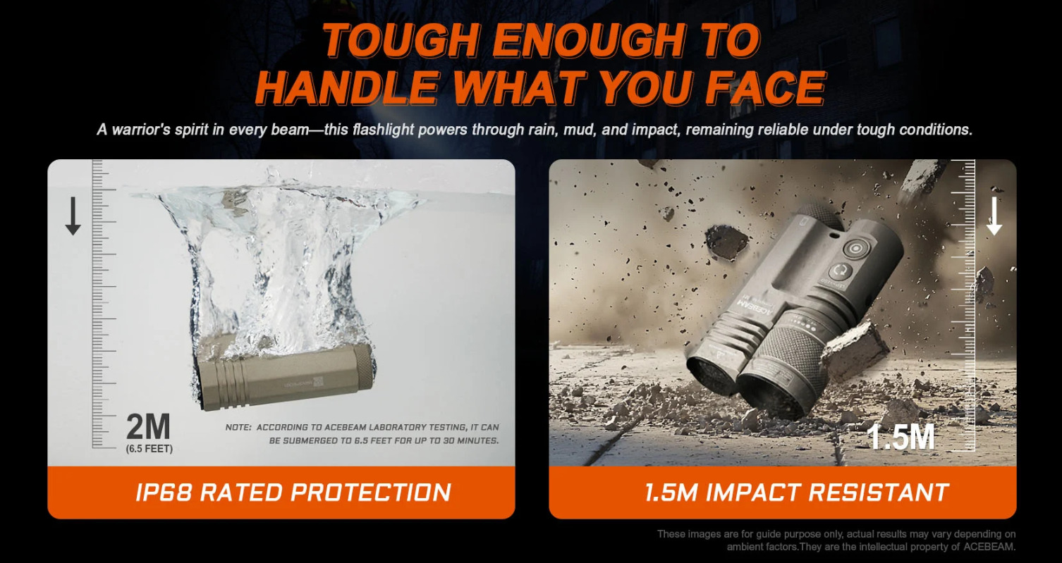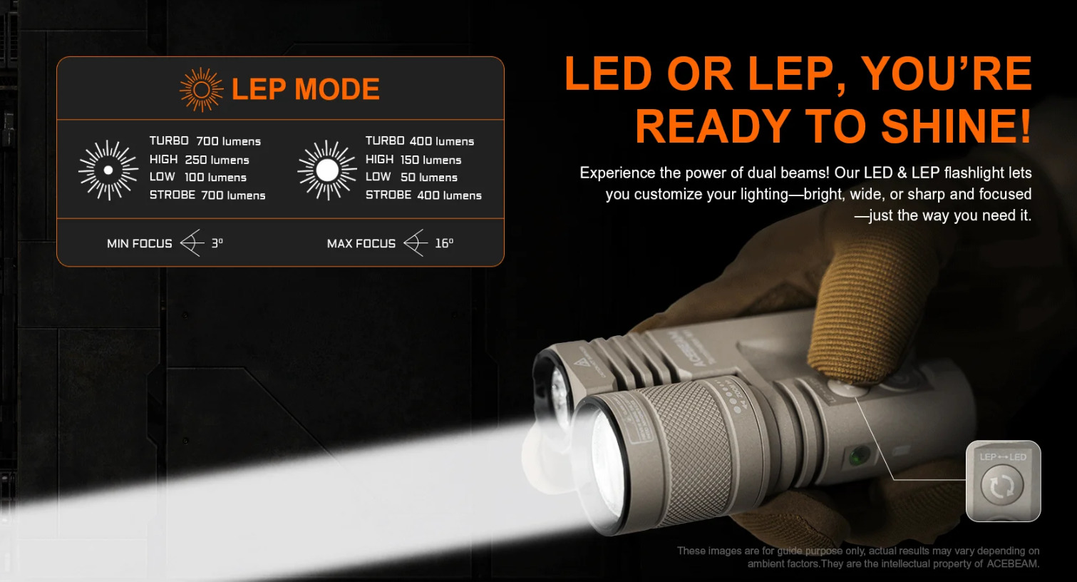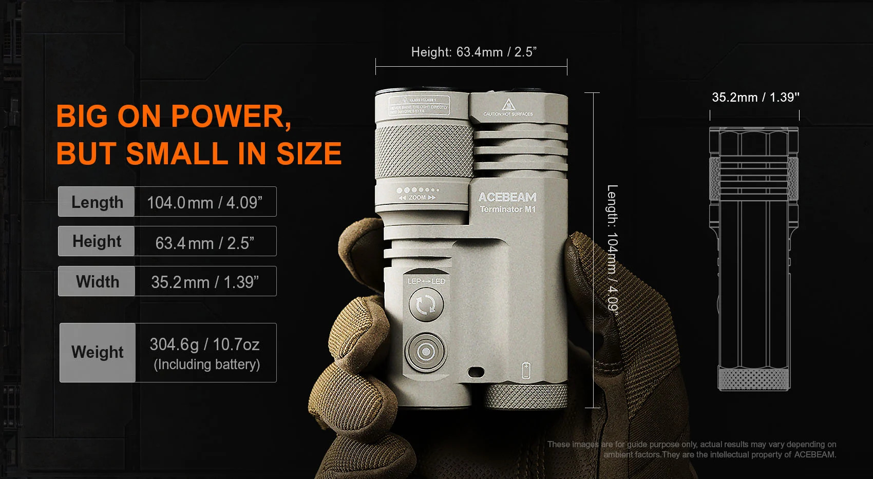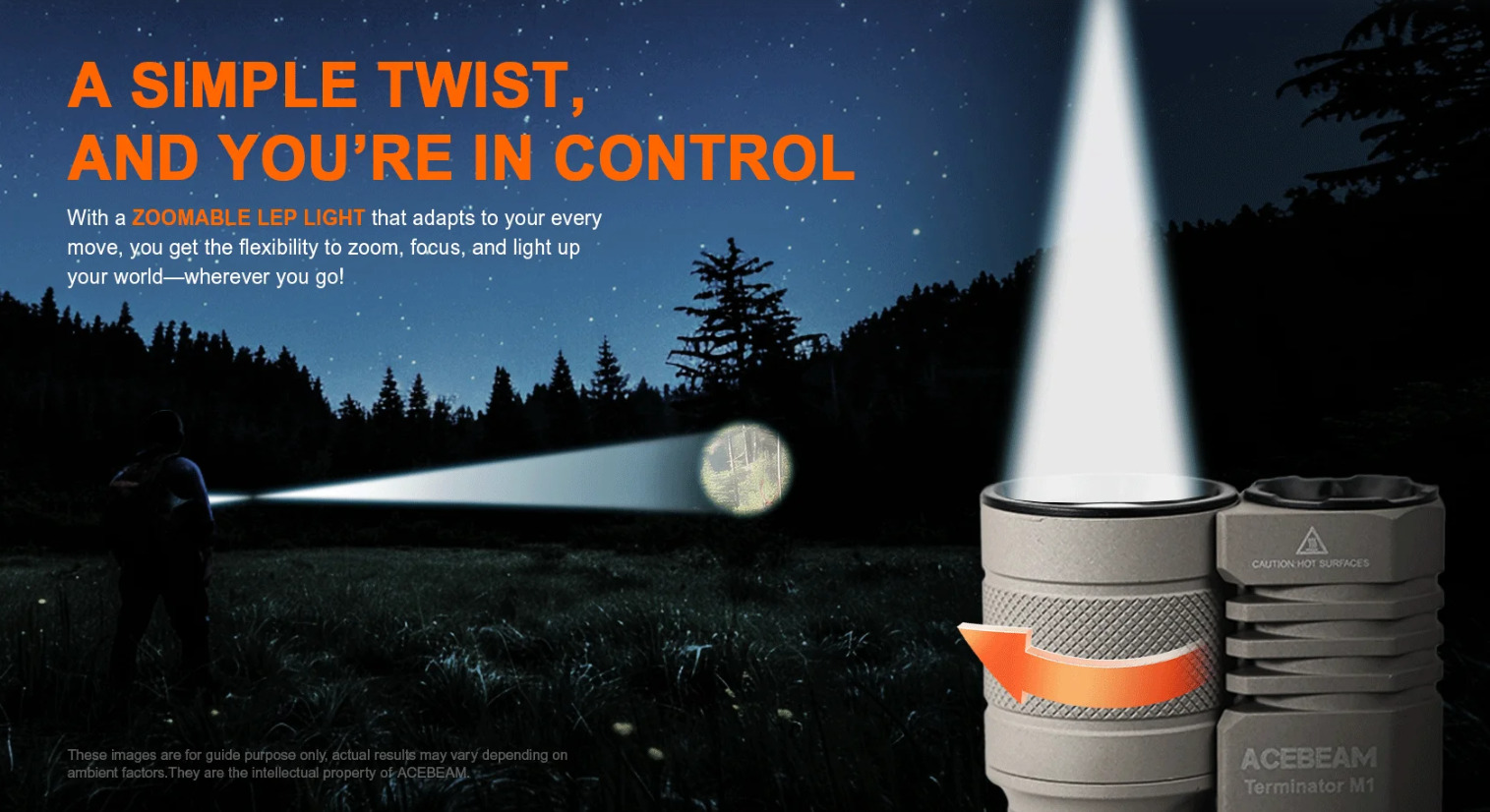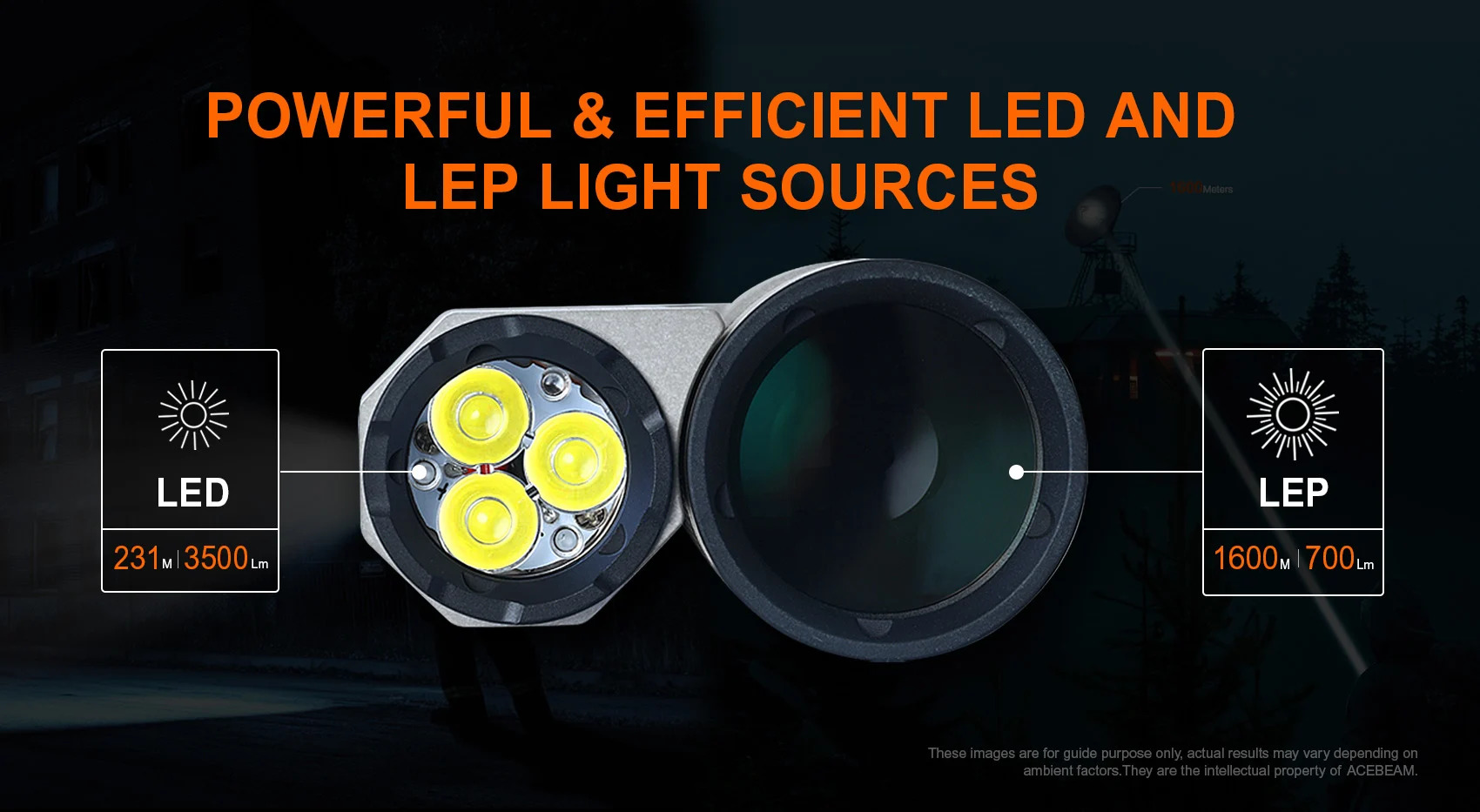 ACEBEAM Terminator M1 手電筒即將顛覆你對傳統手電筒的認知。它融合了 LEP 和 LED 技術,功能遠遠超過單一光源的手電筒。 3500 流明的 LED 泛光燈可照亮前方大片區域。 1600 公尺的 LEP 聚光燈提供驚人的精準度,讓你能夠像雷射一樣精確地聚焦遠距離目標。此外,LEP 聚光燈還支援變焦,你可以輕鬆地在遠距離聚光燈和廣角光束之間切換,照亮更大的空間。這款手電筒配備可充電且可更換的 USB-C 21700 鋰離子電池,是長途旅行或電力匱乏但又需要照明的緊急情況的理想之選。閃爍的頻閃模式讓你在黑暗中更加醒目,確保在需要幫助時能夠被看見。 Terminator M1 隨時待命,讓你隨時準備就緒,掌控全局!
