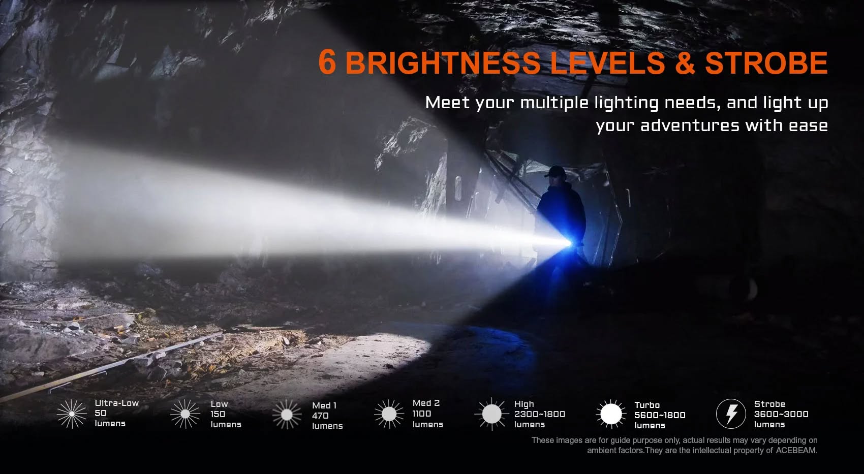 具備6種亮度等級與頻閃模式,滿足不同場景需求,靈活應對各種照明挑戰。
