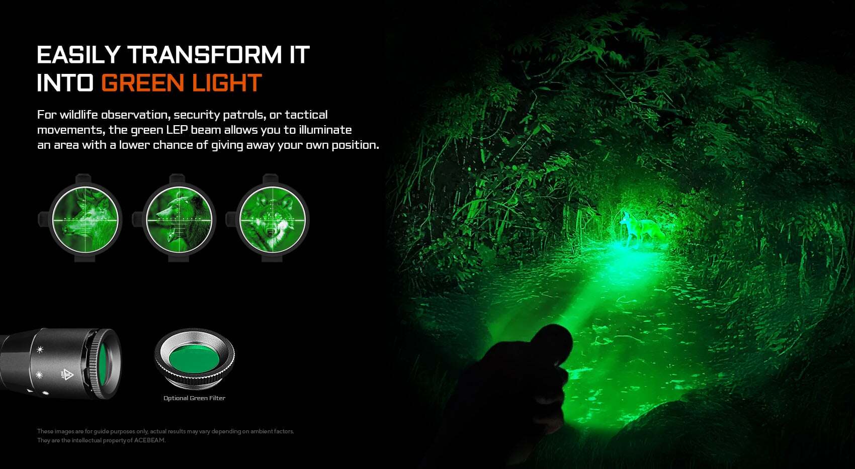 - 支持綠光光束切換,隱蔽性強、不輕易暴露位置。