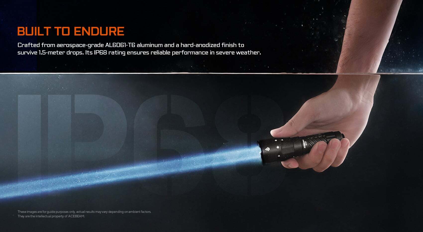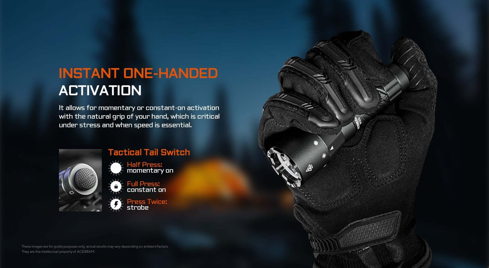 - 尾部戰術開關:半按點亮、全按常亮、**雙擊一鍵爆閃**,高壓應急瞬間響應。