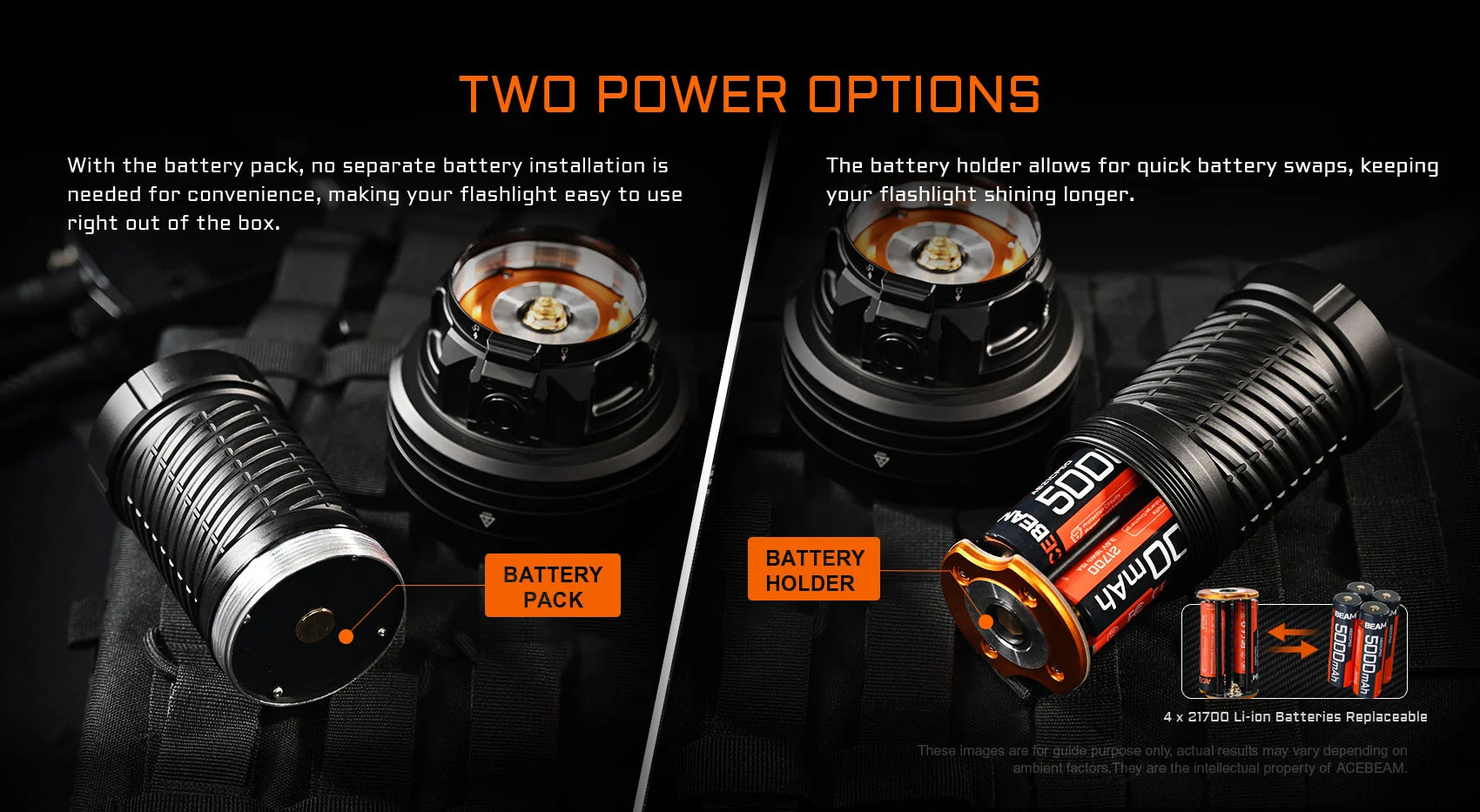 電池架:可裝 4 節 21700 鋰電池(總容量 20000mAh),支持快速更換電池,連續搜索不中斷,滿足通宵救援需求。