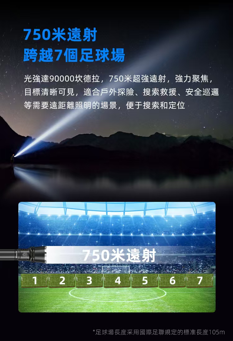 💯【超遠射程】750米射程,彷彿一支光劍,告別繁切換不同電筒的煩惱,一筒搞定