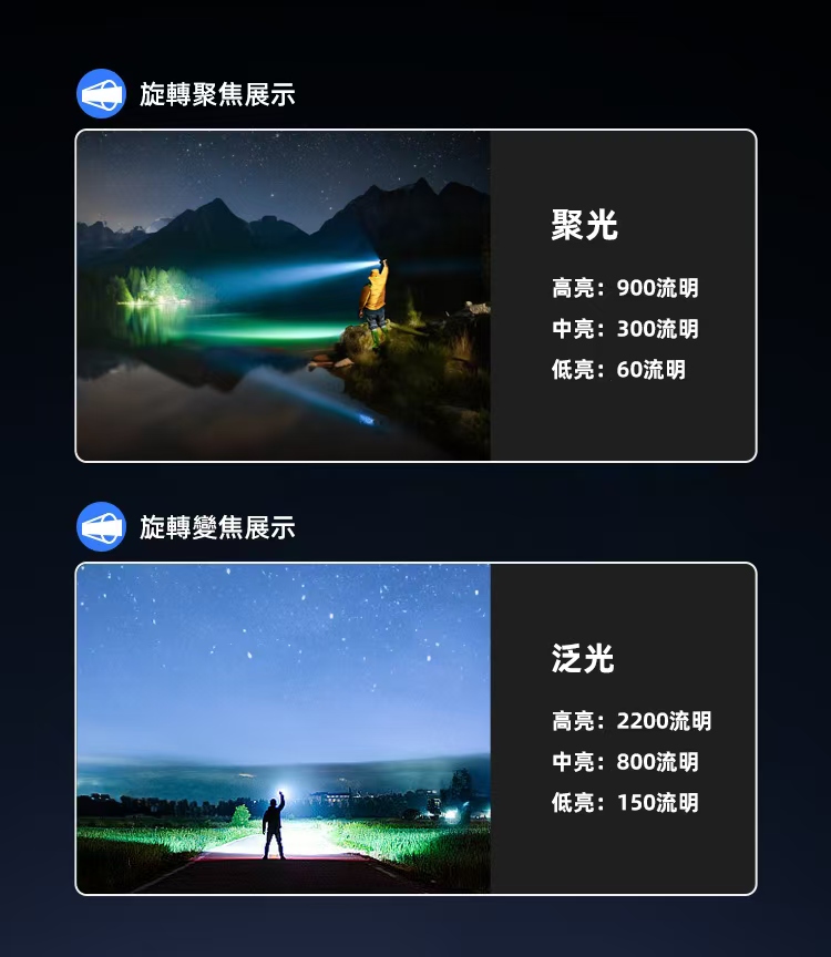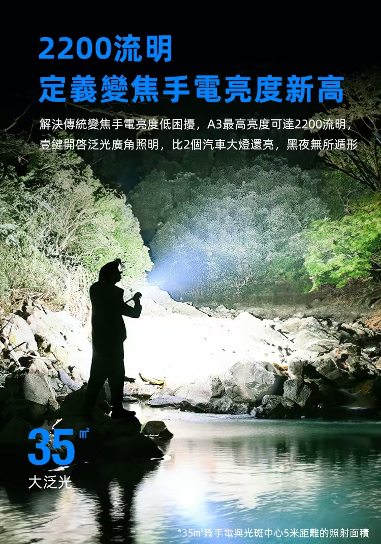 💯最高輸出達到驚人的2200 流明,遠射可達750米,遠近皆宜,一筒多用,接近電筒的完美狀態。