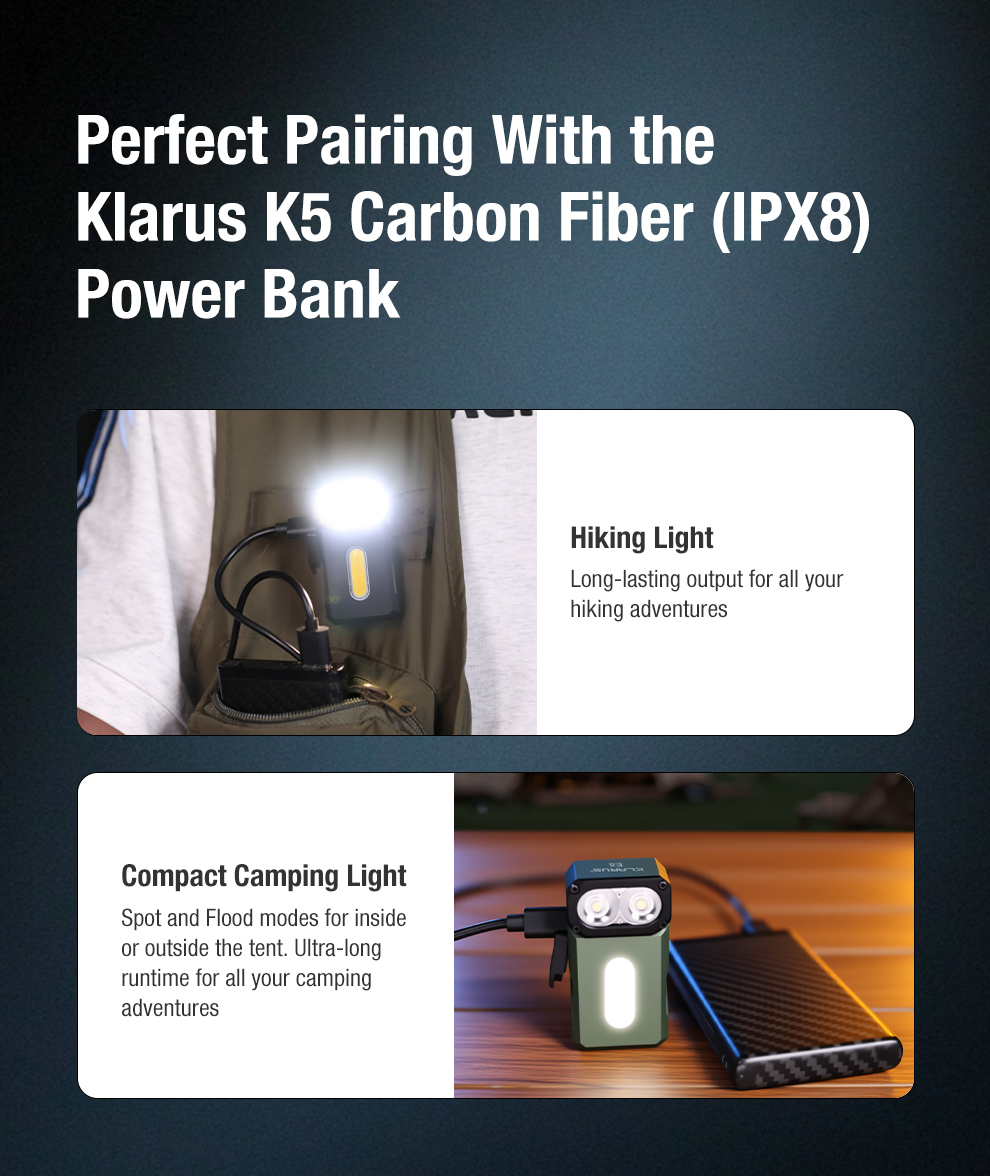 源自 KLARUS 2015 年 AR10 經典設計的 180° 旋轉頭,可在手電筒模式(直射遠光)與 L 形工作燈模式(側射泛光)間隨意切換 —— 維修時旋轉成 90° 角立在桌面,露營時旋轉 180° 掛在帳篷頂,頭戴應急時貼合頭部弧度,多角度照明需求一鍵滿足。