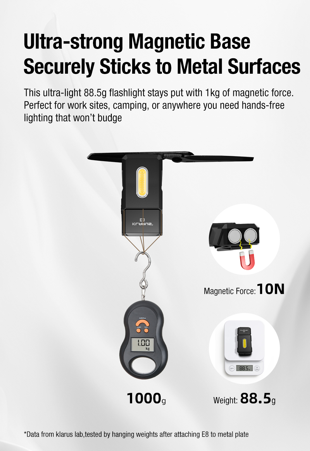 雙 10mm 強磁鐵底座:磁力達 10N(可穩固吸附 1kg 重物),能牢牢固定在汽車引擎蓋、金屬貨架等表面,維修、施工時解放雙手;