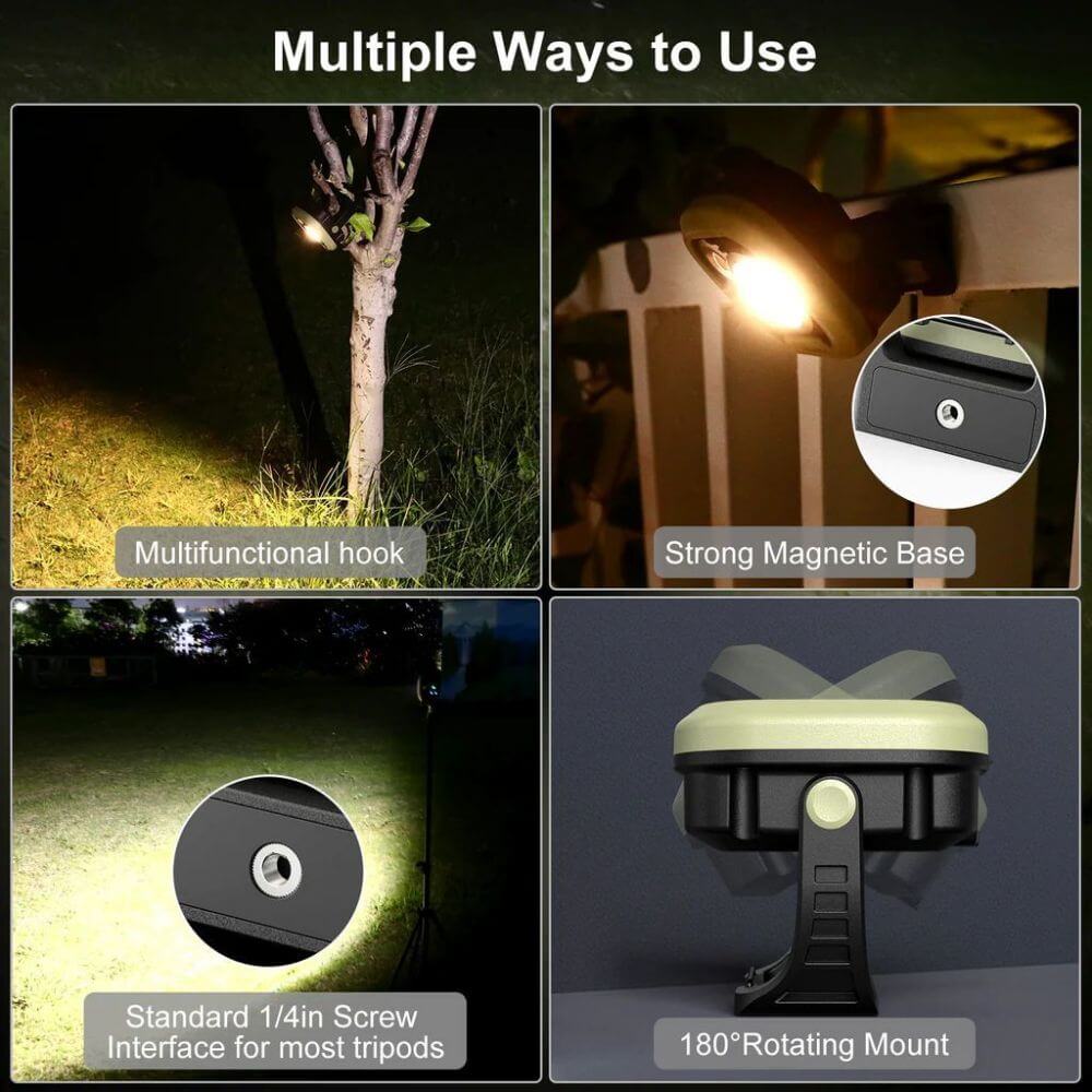 💯【堅固耐用品質】採用高品質 ABS 材質打造外殼,堅固耐用,具備 IPX5 防水等級,能夠有效抵禦雨水、沙塵等侵襲,輕鬆應對各種極端天氣條件。無論是在狂風暴雨中的露營地,或是沙塵瀰漫的荒野探險,亦或是潮濕的河邊釣魚,它都能穩定工作,為您持續提供可靠的照明服務。廣泛適用於露營、釣魚、燒烤、探險、汽車維修、緊急照明等多種場景,同時也能在引擎蓋下工作、工地、車間、船隻、車庫和地下室照明等場合發揮出色作用,是您在不同環境下的得力照明助手。在暴雨中露營,依然正常運作,為帳篷內提供照明。