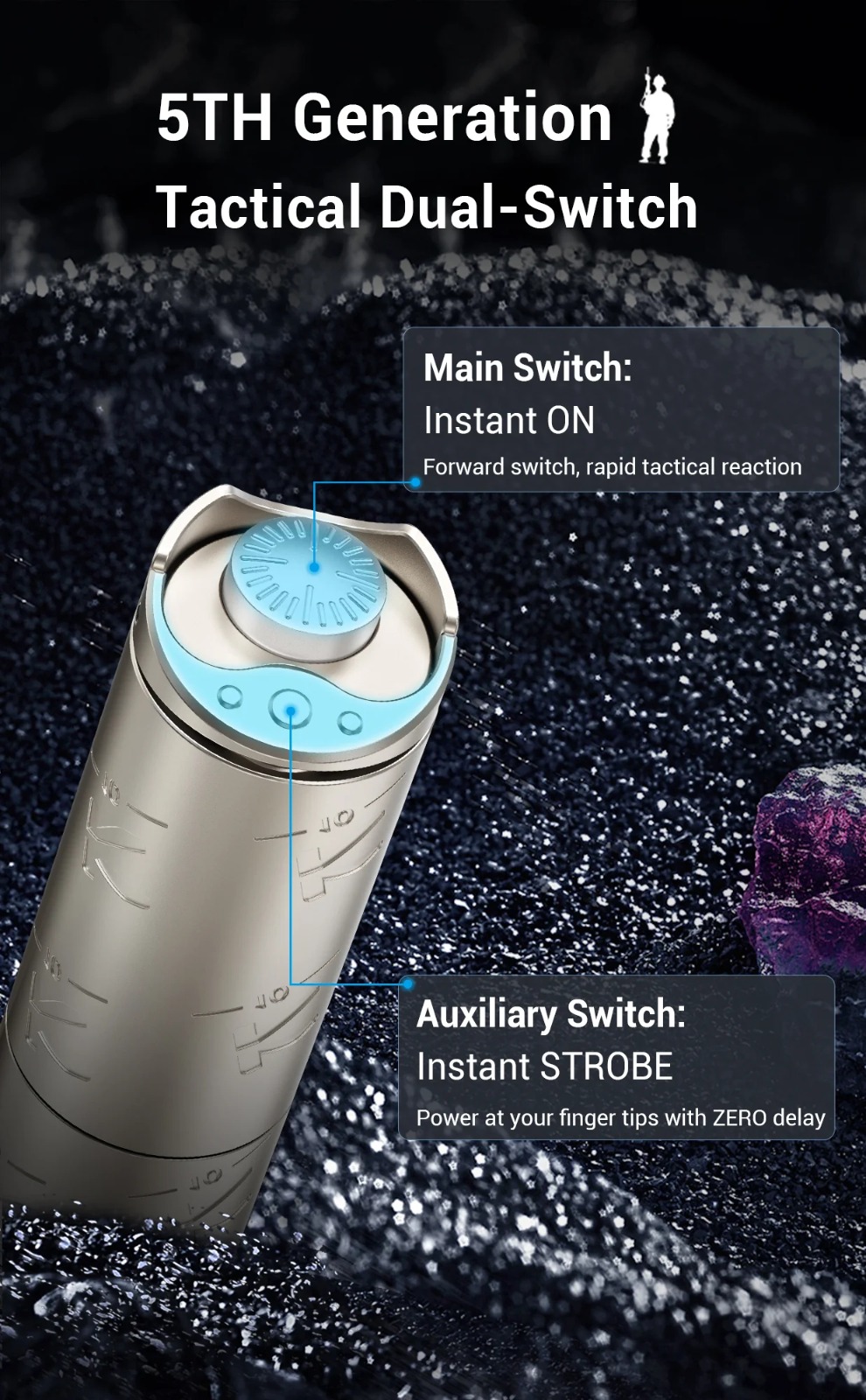 💯【創新雙開關操控】採用 Klarus 專利的第五代戰術尾雙開關設計,這項創新設計大大提升了營運的便利性和功能性。只需一鍵操作,即可快速開啟爆閃、高亮與低亮模式,滿足您在不同場景下的緊急照明需求。在戰術行動中,能夠快速切換到爆閃模式,幹擾對手視線,搶佔先機;在日常使用時,輕鬆切換高低亮模式,適應不同光線環境,讓您的使用更加靈活自如,高效便捷,充分展現了其獨特的設計魅力和實用價值。