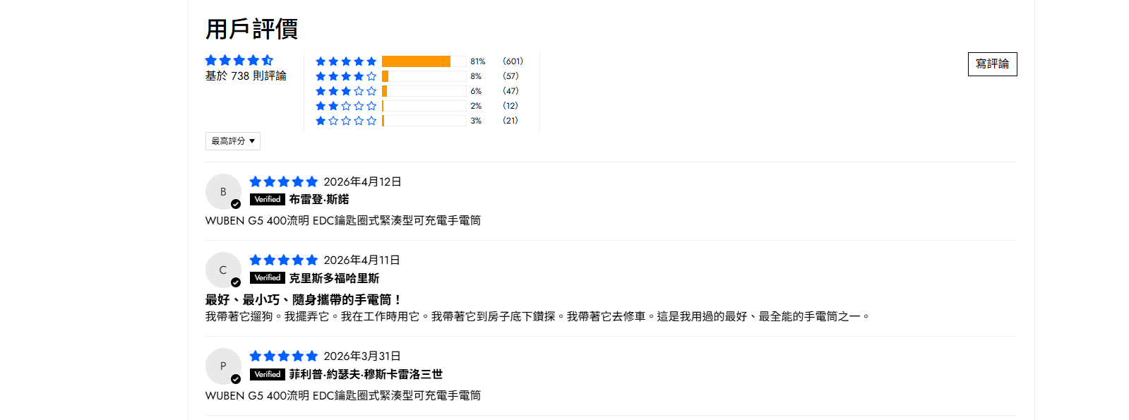 這款口袋大小的強光手電筒僅重52 克,卻能發出400 流明的強光,光束射程可達82 公尺。它小巧到可以掛在鑰匙圈上,亮度也足以應付任何情況。