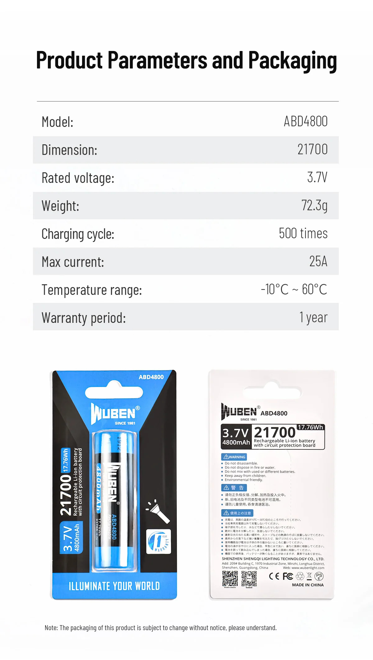 WUBEN X1pro電池 充電 21700 手電筒電池 - 4800mAh