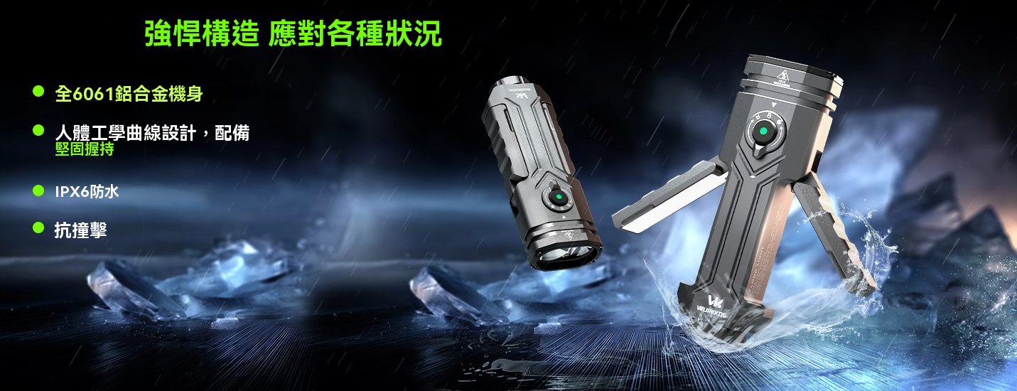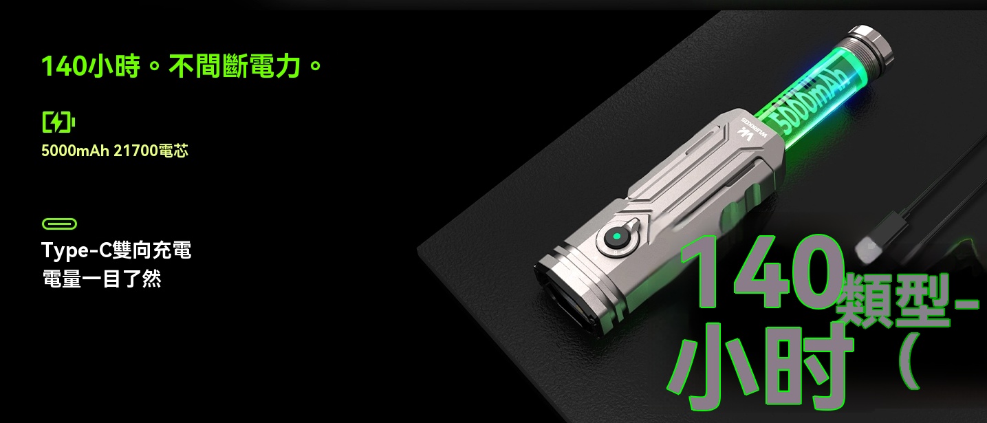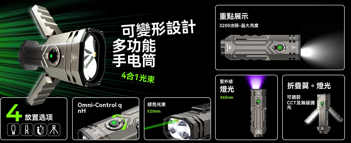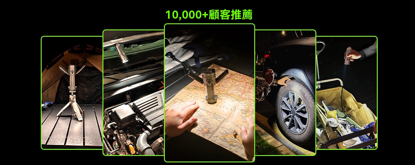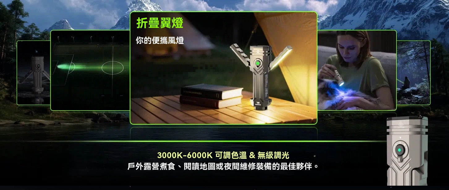 - 折疊翼隨心調:側燈折疊後機身緊湊易收納,展開後可按需調整照明角度,兼顧“定向補光”與“大範圍照明”,解決傳統手電筒單一照明角度的痛點。