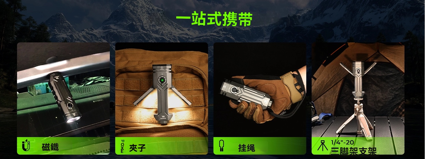 - 多元安裝解放雙手:磁吸設計可吸附在汽車、金屬設備表面,適合維修作業;夾子、掛繩適配日常EDC攜帶,隨手夾口袋、掛背包;1/4"-20三腳架支架支持長時間固定照明,戶外露營、夜間施工時不用手持,實用性翻倍。